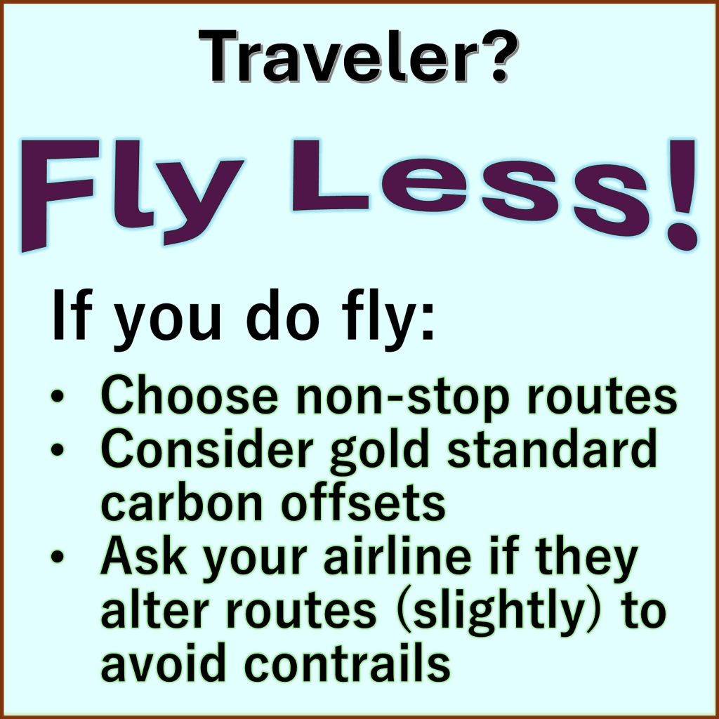 - Fly less and when you do buy Gold Standard Certified Offsets
